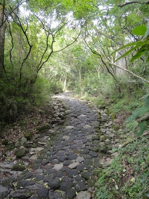 一里塚を過ぎ、「西海子(さいかち)坂」「橿木(かしのき)坂」を経て県道に出るまでの急坂には、江戸時代前期に敷かれた石畳が続き、当時の旅を味わうことができます。途中、解説板が設置されているところでは、よく保存された石組や斜めの排水路などが見られ、石畳構造を知ることができます。