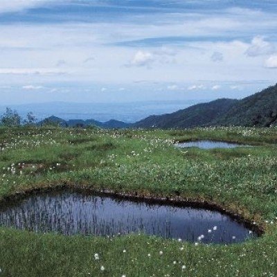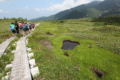 弥陀ケ原高原は、標高約1,600m〜2,100m、南北2km、東西4kmにわたり広がる静かな高原です。ラムサール条約登録湿地である弥陀ケ原では、夏になると高山植物が美しく咲き誇り、色鮮やかなチョウが多<見られます。立山カルデラを一望できます。 立山黒部アルペンルー卜上に位置し、高所でありながら比較的容易にアクセス可能でもあり、周辺には称名滝から美女平、室堂平と、多彩なトレッキングコースが存在し、全国的な山岳観光地となっています。