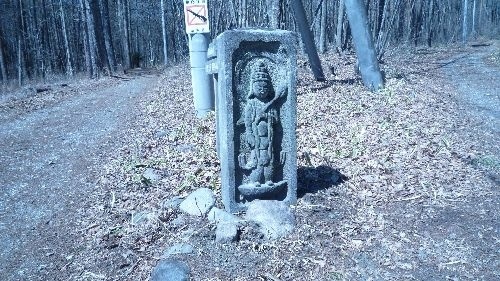 十六番観音 江戸時代末期、小荒間村と谷戸村の人々が建立し、棒道沿いに一丁(約109m)おきに30数基の観音像が安置されたことから、現在に棒道の一部が残されたそうです。当初は100体の観音を建立する計画でしたが、西国観音は三十三番まで、板東観音は十六番までが建立されています。