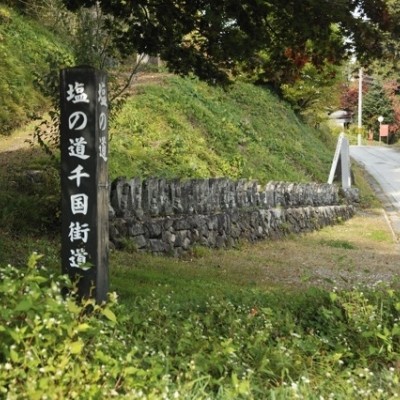 新潟県糸魚川市から松本城下まで約三十里(120キロ)を結ぶ千国街道は、上杉謙信が対立する武田信玄に塩を送り、「敵に塩を送る」ということわざにもなったとされ、最も有名な「塩の道」です。歴史は古く、糸魚川産の翡翠や信濃産の黒曜石が流通していたと古事記に登場しています。近世では牛馬や歩荷と呼ばれる人たちが盛んに行き来し、海産物を信濃へ、農産物を越後に届けました。それは華やかな大名行列などの往来もない生活物資運搬のための経済路線、いわば汗のにじんだ庶民の道として明治の時代まで続きました。
