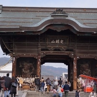 「牛に引かれて善光寺参り、展望の道」に市街地での見所(刈萱山西光寺、十念寺、ぱてぃお大門)を加えて、善光寺参拝の期待感を高めています。市街地と緑豊かな山の麓を歩く抑揚のあるコースで、善光寺を過ぎて通称「桜坂」を上ると、市街地を一望できる絶景と春には桜とぼんぼりの風情ある景色が楽しめます。数ある道の中でも洗練された道といえます。
