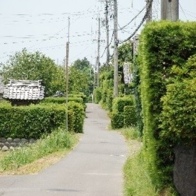 広大な水郷地帯で、あちこちに高台となった場所に細く道が続く不思議な風景です。かつては、佐屋川・天王川という大河で高台は堤防の跡です。メインルー卜は、明治時代に廃川となった木曽川の支流佐屋川などの堤防上に残る道です。江戸時代の御囲堤の一部で日本最大の海抜Om地帯において、蓮田や水田など農村風景を楽しむことができます。サブルートは、江戸時代に廃川となった天王川堤防上に残る道で、津島上街道の一部、信長が生誕地勝幡城から津島港へ歩いた道でした。メイン・サブルー卜はV字につながり周遊できます。