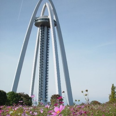 高さ138mの「ツインアーチ138」、約4,000株の四季咲きのバラが植えられている「バラ園」、コスモスなど季節ごとに花が美しい「花畑」「花の迷路」などがあります。ほかにも大芝生広場やイベント広場、子どもたちに大人気のフワフワドーム・大型木製複合遊具などもあります。