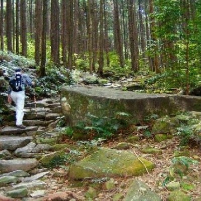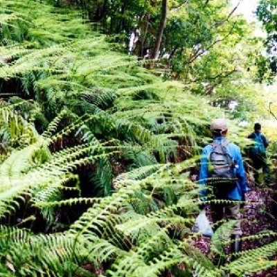 天然記念物に指定されている尾鷲神社の「大楠」、尾鷲湾沿いに天満浦の道を歩き、明治時代に峠道ではなく大八車を通るように作られた尾鷲と海山を結ぶ道「猪ノ鼻水平道」で自然に触れ、世界遺産熊野古道の魅力の一つである苔むした石畳の中でも最も美しく現存していると言われる「馬越峠」で歴史を思い、中井町通りで終点となります。世界遺産熊野古道をはじめ、尾鷲市の歴史や自然を満喫することができるコースです。