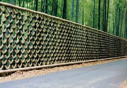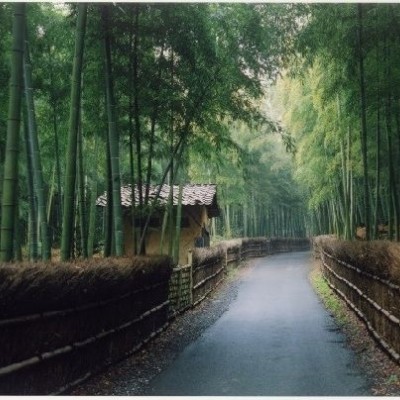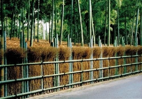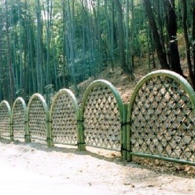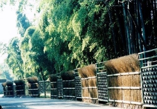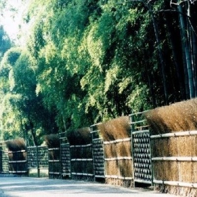 全国でも良質な筍の産地として知られている「竹林を整備した「竹の径」です。竹の枝を束ねた「竹穂垣」をはじめ、丸みを帯びた古墳の形を表現した「古墳垣」、かぐや姫の十二単衣の襟元をイメージした「かぐや垣」などオリジナルを含めて、8種類の竹垣が整然と連なる全長約1.8kmにおよぶ竹林道です。 風がおこす笹音や小鳥のさえずりをBGMに、木もれ日や香りを楽しむ。一時の喧噪からのがれて、はんなりとした時間を過ごせる「癒しの散策路」です。