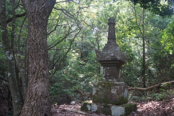 海老坂峠は、その昔若狭の国(福井県小浜市)から京の都まで海の幸を運ぶ鯖街道の一つであり、主要な街道でした。木炭の需要が増えた明治末期から大正年間は、毎日のべ100人余りの人と7,80頭の牛馬が、荷物を背負ってこの峠を歩きました。日吉町側の峠中腹には、若狭の八百比丘尼が建てたという伝説の残る玉岩地蔵堂があり、今も小浜市からの参拝者が訪れます。毎年9月23日の彼岸法要では、お堂の隣の庫裡が開かれ、二階席で昼食を食べながら舞台の余興を見ることができます。峠の山頂には南北朝時代の大きな宝篋印塔があり、旅人を見守っています。昔の旅人の気持ちが味わえる、四季おりおりの風景がうつくしい古道です。
