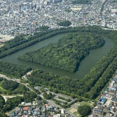 古墳文化が花開いた時代、大阪湾にほど近いこの堺の地にかつてない巨大な前方後円墳が多数造営されました。世界最大級の墳墓・仁徳天皇陵古墳をはじめとするこれらの古墳は、取り巻く中小の古墳とともに「百舌鳥古墳群」を形成し、1500年の時を経て今もその雄大さを誇っています。「百舌鳥古墳群」の古墳は、その一つ一つがかつての日本の姿を今に伝える世界的な歴史遺産であり、日本の歴史の1ページを語る貴重な遺産であるといえます。この百舌鳥古墳群が誇る主な古墳を1日かけて巡るコースです。