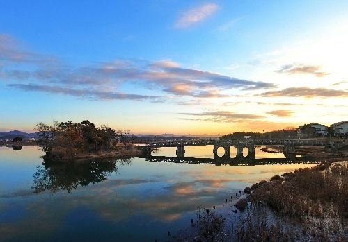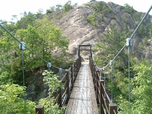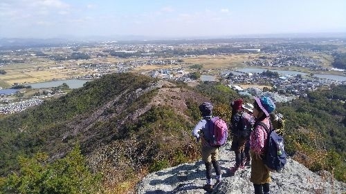のどかに広がる加西盆地を前景に、古法華を中心としてほぼ東西に連なる善防山(251m)から笠松山(244m)へかけての岩山の起伏が広がるのが見てとれます。笠松山の山頂から善防山山頂へと、ゆったりと延びる岩稜は魅力。吊橋あり、360度広がるパノラマあり、古法華を中心に左右に連なる尖峰群は、さながらアルプスのミニ版といった風景です。山頂からは、長の石山、ため池、水田など加西を象徴する風景が一望できます。古法華寺には日本最古の石棺仏を予約制で見学可能です。