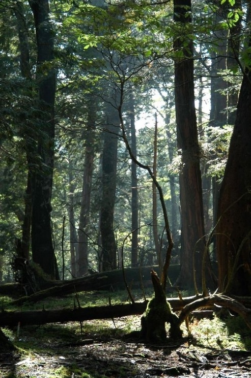 日本有数の降水量を誇りその恵まれた多量の雨が湿潤な気象条件を生み出し、日本を代表する森林を形成し、動植物の楽園となっています。大台ヶ原は大きく2つに分けられ、西大台はモスフォレストと呼ばれる苔の多い林や広大なブナ等の原生的な森林が広がり、静寂で神秘的な雰囲気を体感できます。この貴重な自然は、日本で初めて国立公園の「利用調整地区」となり、入山手続きが必要です。必ず地図とコンパスを携帯し、一人での山行きはさけ現地を熟知した人(ガイド等)と一緒に訪れてください。中上級者向け登山道。