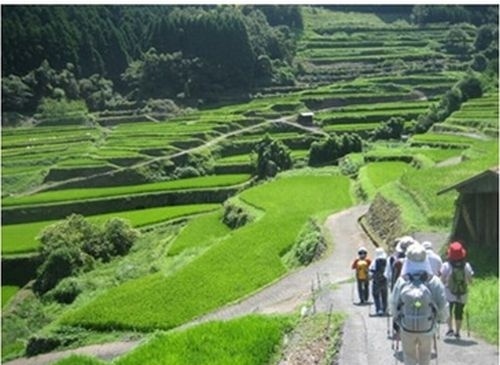 うきは市は、福岡県の南東、大分県との県境に位置しており、山間部である市の南部にはその尾根が直線に約23km続く日本でもとても珍しい地形を有した「耳納連山」や平野部には九州一の大河である「筑後川」が広がる自然豊かな土地です。本コースの「つづら棚田」は、新緑・紅葉・雪景色と様々な日本の原風景が楽しめます。特に彼岸花が満開となる9月には「棚田inうきは彼岸花めぐり」が開催され、多くの見学者で賑わいます。その美しさから「日本の棚田百選」にも認定された約300枚もの棚田が広がる圧巻の『つづら棚田』とともに、道中のマイナスイオンたっぷりの森林浴を楽しんでいただけるルートです。また、訪れる方々を癒しの空間へと導いてくれる、森林セラピーのプログラムを受講した、うきは市認定の案内人『癒しの旅先案内人』が案内も致します。