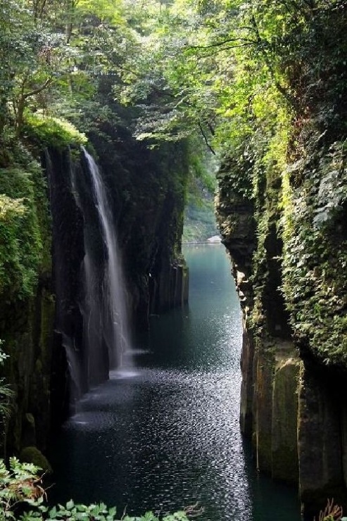 高千穂峡は、阿蘇熔岩が浸蝕されてできた峡谷で、高いところで100m、平均80mの断崖が7kmも続いています。峡谷には、玉垂の滝・真名井の滝・あららぎの滝などがあり、新緑と紅葉の頃は特にすばらしくとても美しいです。また、天孫降臨神話の地です。自然が生み出した「高千穂峡」の神秘と日本の滝百選にもえらばれている「真名井の滝」を肌で感じることができます。