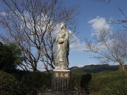 都城盆地でも高城は南東側に位置し、この道を月山日和城に上がると都城盆地が大きく広がり、西に雄大な霧島連山、高千穂の峰が仰げます。ここは天孫降臨の地として有名です。高城の武家屋敷門と、仁徳天皇の妃として知られている髪長姫の銅像と牧ノ原古墳群、そして石山観音寺と広い石山観音池や遊園地、温泉も楽しめます。