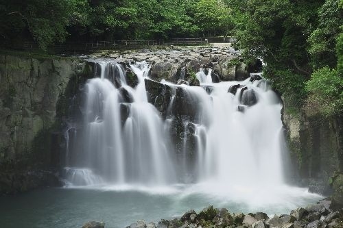 都城の四季は、母智丘の桜にはじまり、夏には萌える緑のさわやかさ、秋は赤々と染まる紅葉の美しさに彩られます。緑滴る関之尾では、世界最大級を誇る甌穴群と雄大な滝がみどころ。日本の桜名所100選に選ばれている桜並木、日本の滝100選に選ばれた滝、そして国の天然記念物に指定されている甌穴群を堪能できる贅沢で、大自然の造形美が美しいコースです。※関之尾滝〜甌穴群についてはボランティアガイドの方がいます(無料・要予約)。