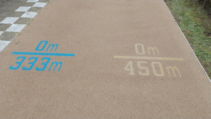 450Mと333Mの弾力性のある路面のコース。緩いアップダウンあり。