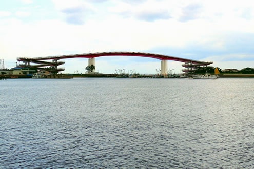 「ちばアクアラインマラソン」のコース(2016年実績)の一部を走る。 木更津港に面した木更津潮浜緑地公園をスタートして、小櫃川まで北上して折り返す往復コース。港沿いでは、途中通過する鳥居崎海浜公園や、潮干狩り場までをつなぐ木更津のシンボル「中の島大橋」(写真)などが海の向こうに見え景色も最高。中の島大橋は人だけが通れる日本一の高さ(27m)の歩道橋。コースは全般的に平坦なので、最後にこの橋で坂トレーニングを加えるのもおすすめ。