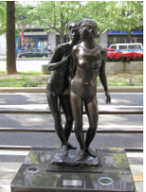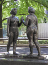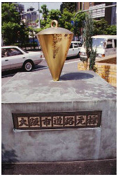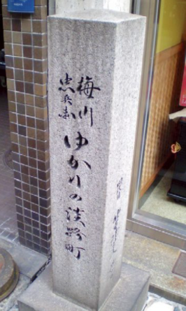 近松門左衛門の作品の中には、惣島新地・曽根崎新地を部台にしたものがあり、中でも「心中天網島」(1720年の作)の一節名残の橋づくしには、当時曽根崎川に架けられていた難波小橋・蜆橋・桜橋・緑橋・梅田橋の名がたくみに取り入れられている。しかし、この曽根崎川も明治42年(1909)の北の大火後に上流部、ついで大正13年(1924)には下流部が埋め立てられ、昭和20年(1945)の戦災でこのあたり一帯は焼失したが、今日では北の新地としてにぎわいを取り戻している。