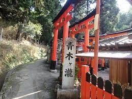 京都市伏見区の伏見稲荷大社の境内の外側、南側に点在する社にある滝行のための滝。