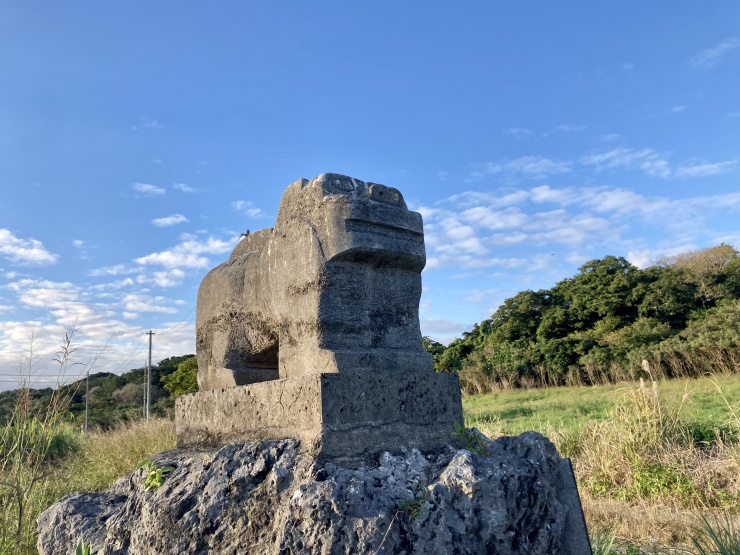 国吉守護獅子 国吉のイシシーサー。2000年に復元された昔ながらの四角い形のシーサー。