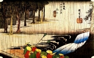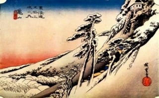 五十三次を描いた広重絵の中でも、傑作として取り上げられることの多いのが、ここ蒲原宿を描いた「夜之雪」です。しかし、この絵は画家が生み出したフィクションであり、実際の蒲原宿は、前後の吉原、由比と同じく、太平洋・駿河湾に面した海岸沿いの町。五十三次の中でもむしろ温暖な気候の地であり、雪が降り積もるようなことは数十年に一度あるかないかだといいます。