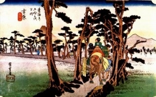 吉原の名はもともと、ヨシが生い茂る低温地だったことから付いたといわれています。富士川の船渡しを挟んだ蒲原宿とともに、対向宿場町として発達したことで知られていますが、東海道五十三次の中で、原宿とこの吉原宿ほど土地の悪条件に悩まされた場所はありません。吉原宿の人々は高潮の被害に悩まされ二度も宿場を壊されたので、その都度宿場を移転せざるを得ませんでした。このため、街道を北へ向かって大きく迂回せざるを得ず、「左富士」が誕生しました。