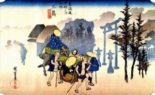 険しい箱根の山を越え、長い長い坂道を降りてゆくと、次なる宿場町の三島へと至ります。平安時代には伊豆国府が置かれるなど、古くから伊豆地方の中心地として栄えてきたこの地は、富士山からの豊かな湧き水に恵まれた「水の町」でもありました。