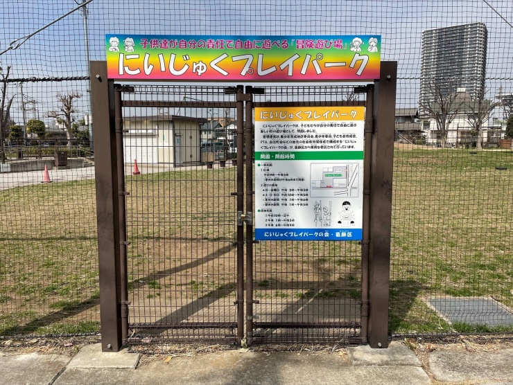 にいじゅくプレイパークには、手づくりのつり橋やターザンロープなど子どもの冒険心をかき立てる施設があります。また、建物内に木工作の道具があり、自分で物を作る体験もできます。