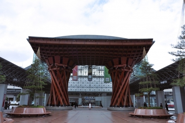 北陸新幹線金沢駅 127.5km地点、現在の北陸新幹線の終点、金沢駅。 2024年春にはここから敦賀駅に向けて延伸される。 イメージは~金沢のまちを流れる水、「伝統と創造」の調和~。「まちがみえる、心と体に気持ちがいい駅」がデザインコンセプト。