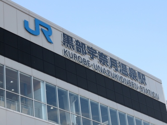 北陸新幹線黒部宇奈月駅 218.8km地点、黒部宇奈月駅。 イメージは豊富な水を湛える黒部の自然が映り込んだ駅。「見えない駅・魅せる駅」がデザインコンセプト。