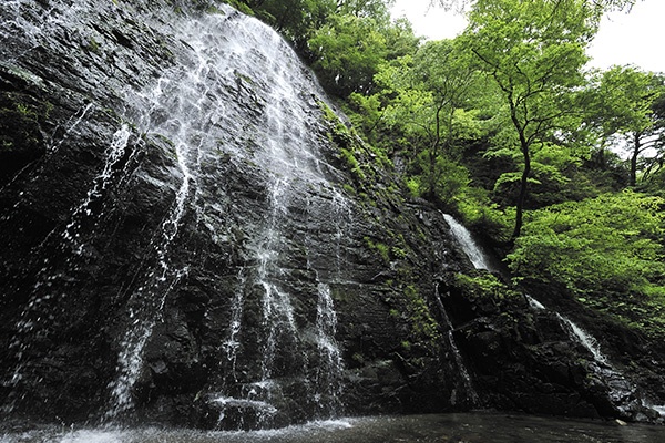 人口2700人弱の池田町。初夏には青い稲穂が広がり、秋には黄金の海が波打つ田園風景はすばらしい山村の町。自然いっぱいの中をノンストップで走れることからサイクリストも訪れる。山あいの集落を川沿いに進み、坂道を上ると見えてくるのが「龍双ケ滝」。日本の滝100選のひとつで、落差60mの滝を見上げる景色は圧巻!下りと上りで疲れた身体も、木々の香りと目にも涼やかな滝のしぶき、マイナスイオンに癒される。