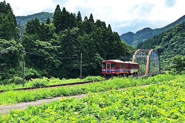 関市役所をスタート。長良川沿いの国道156号を北上し、郡上市の長良川鉄道「みなみ子宝温泉駅」がゴールのワンウェイコース。18.9kmの行程は、小刻みなアップダウンが延々と続く。みなみ子宝温泉駅は駅舎がそのまま温泉施設という珍しい駅。子宝の湯で汗を流し、腹ごしらえしたら、帰りはかわいいフォルムの単線列車の旅を楽しみたい。もと来た道を車窓から眺めれば、ハードなコースを走りきった満足感とともに、その風景が一層鮮やかに目に映るはず。