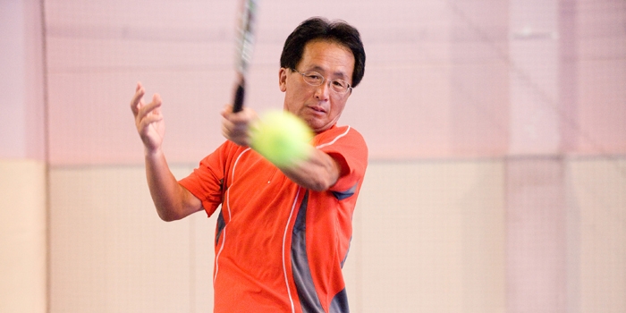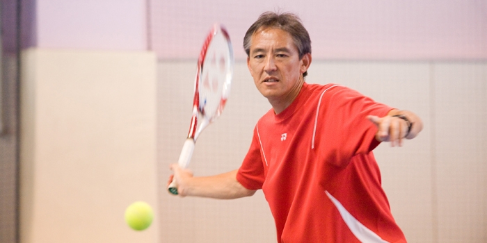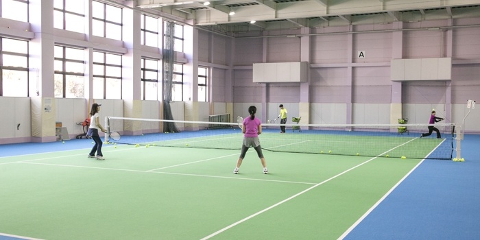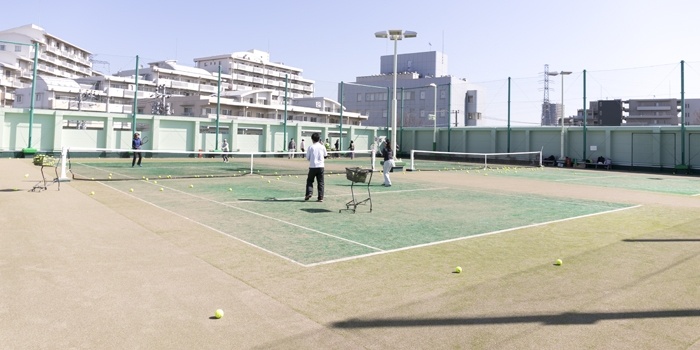テニスコートはナイター設備があるアウトドアコート5面、雨でも安心、空調設備のインドアコート2面。
