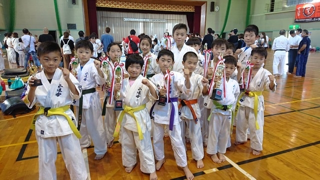 幼年少年部では、礼儀礼節はもちろん、空手の動きを通して体を動かす事を好きになる事を教えます。「元気、勇気、やる気」を教え運動嫌いを無くします。また広い年齢の道場生と接する事で社会性を学ぶ事も出来るでしょう。
