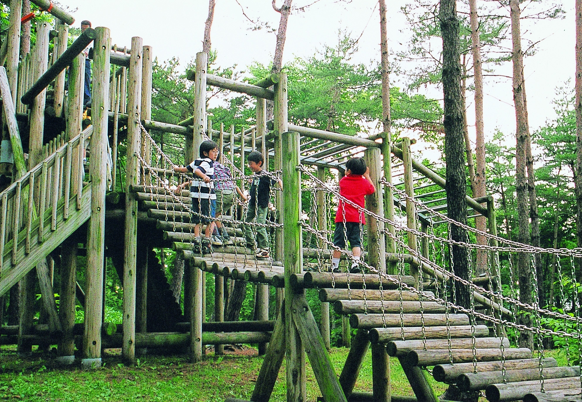 都南つどいの森は盛岡駅から車で20分の距離にある身近な森林公園。大きな木製アスレチックは子どもだけでなく大人にも大人気!また,自然の中で,木造のキャビンやバンガローに宿泊できます。