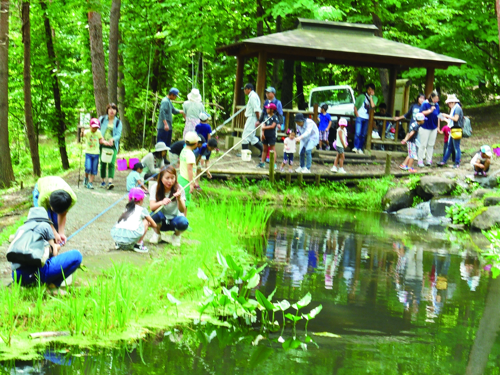 オーナメントや季節の雑貨を作る木工教室やイワナのつかみ取り,釣り堀での釣り体験も可能。昼食には雨天でも利用できる屋根付きバーベキューサイトをご利用ください。