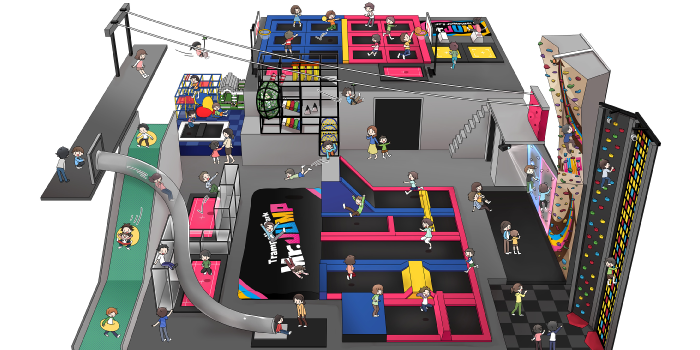 トランポリンをメインに、「スライダー」「ボルダリング」「HADO」等の最新VRも体感出来ます!