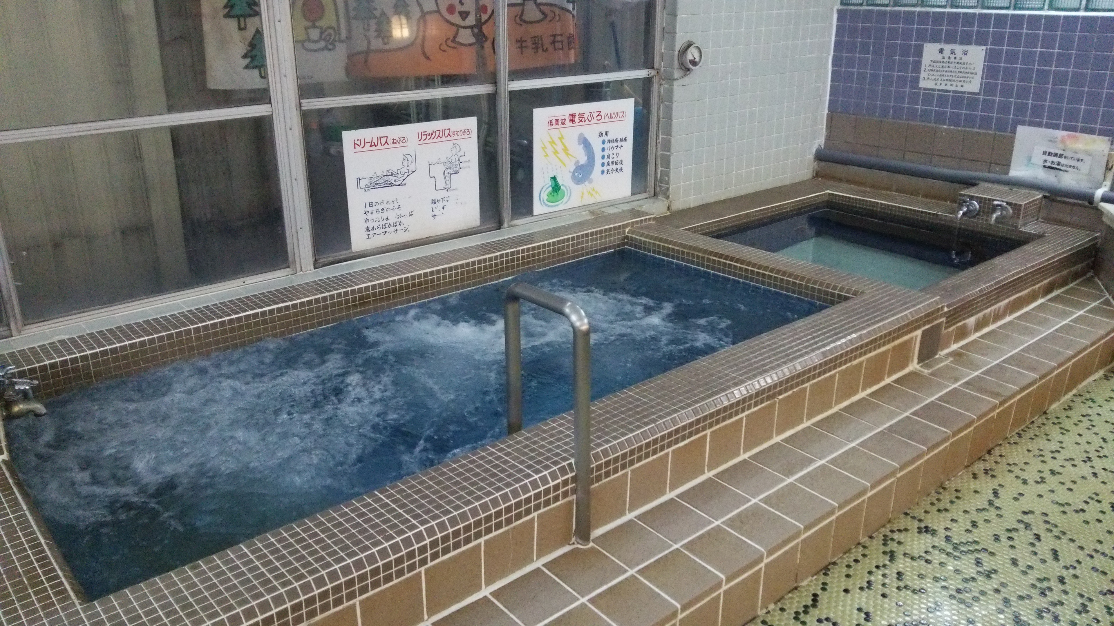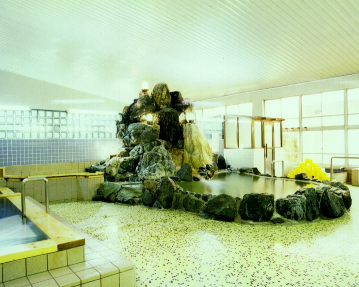 大きな露天風呂風な浴槽には、池田さくら温泉をタンクローリーで直送。