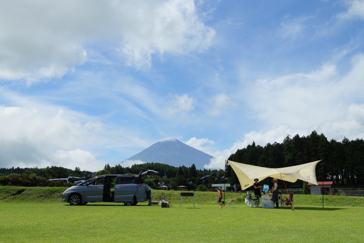 35,000㎡(東京ドーム2個分よりも広い)の国内有数の広さを誇り、全面芝生のサイトからは雄大な富士の姿を眺めることができます。