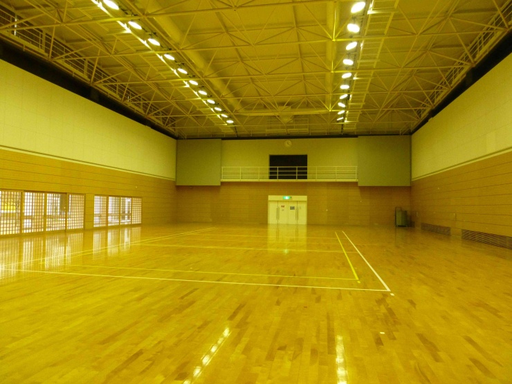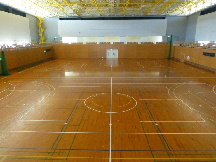 面積:1,710㎡(47.5m×36m)、観客席:1,000席(障がい者用4席含む)、競技:バスケット/2面、バドミントン/8面、スカッシュバレー/8面、卓球/24台、バレーボール/3面(競技用2面)、フットサル/2面、硬式・軟式テニス/2面、レスリング/3面等