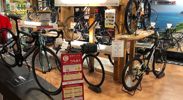 ロードバイク・クロスバイク・マウンテンバイク・折り畳み自転車などのスポーツバイクや、パーツ、サイクルウェアなど幅広く取り扱う専門店