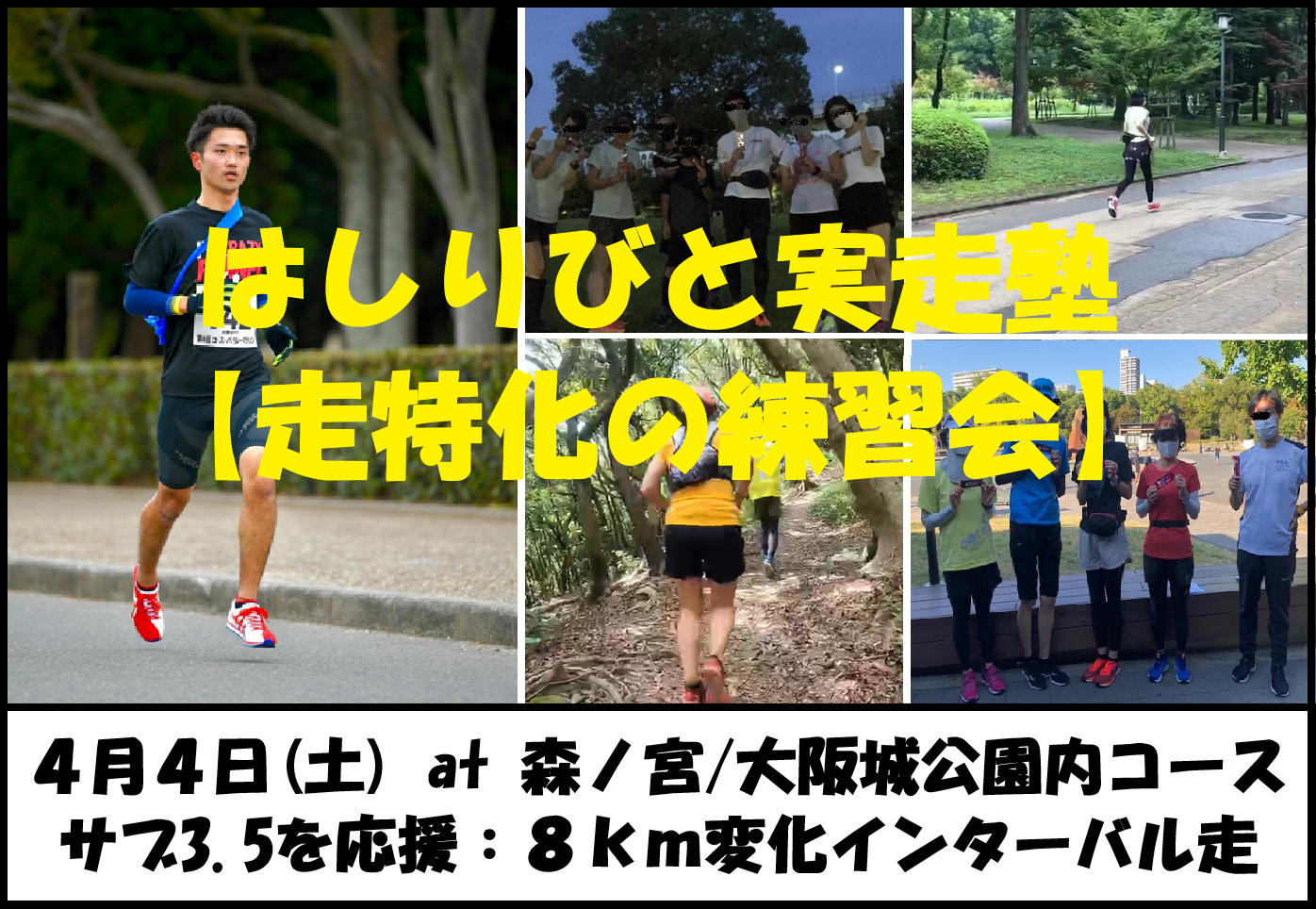 - 4/4【森ノ宮/土曜/早朝練】はしりびと実走塾『サブ3.5を応援!! 8km変化インターバル走』 :