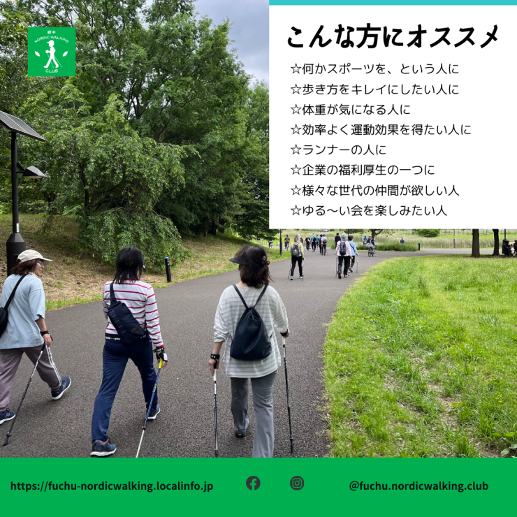 また普段個々で運動している人を繋ぎ、健康的なライフスタイルを保つスポーツの一つとして推奨し、ノルディックウォーキングを通じた交流を促すウォーキングクラブです。