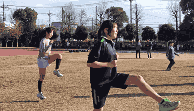 前半の動きづくりも、走りを変えるためのトレーニングとして実施します。