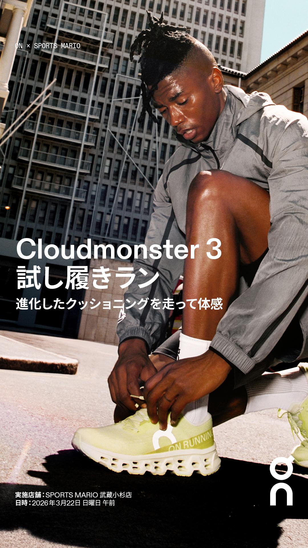 On × スポーツマリオ Cloudmonster 3 試し履きラン 進化したクッショニングを体感 受付終了