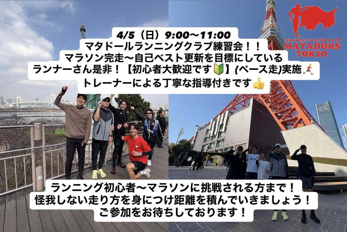 名古屋のランニングクラブ「マタドール・スタイル・ランナーズ」が東京店にも誕生!パーソナルトレーニング資格を持つプロの指導で、怪我を未然に防ぎ、効率よく走れる体づくりをサポートします!「自己流の練習で怪我をしてしまった」「タイムが伸び悩んでいる」という方に最適です。主に上野公園を中心に活動しています。毎週日曜日9:00~11:00に練習会を開催。月1回のランニングイベントも開催しています!