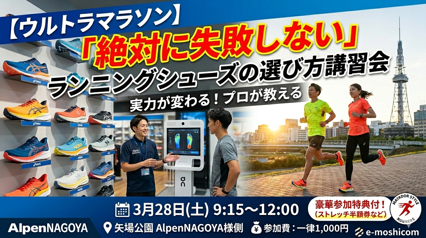 - 【アルペンナゴヤ×challenge ウルトラマラソン】実力が変わる!プロが教える「絶対に失敗しない」ランニングシューズの選び方講習会 in 栄