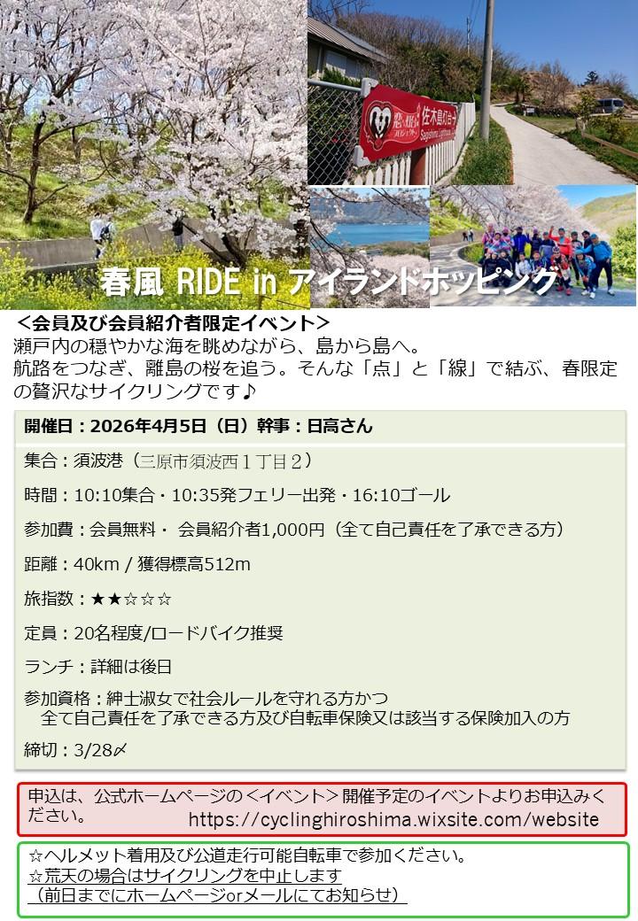 cycling.hiroshima@gmail.com、090-1686-0708 - イベントID
