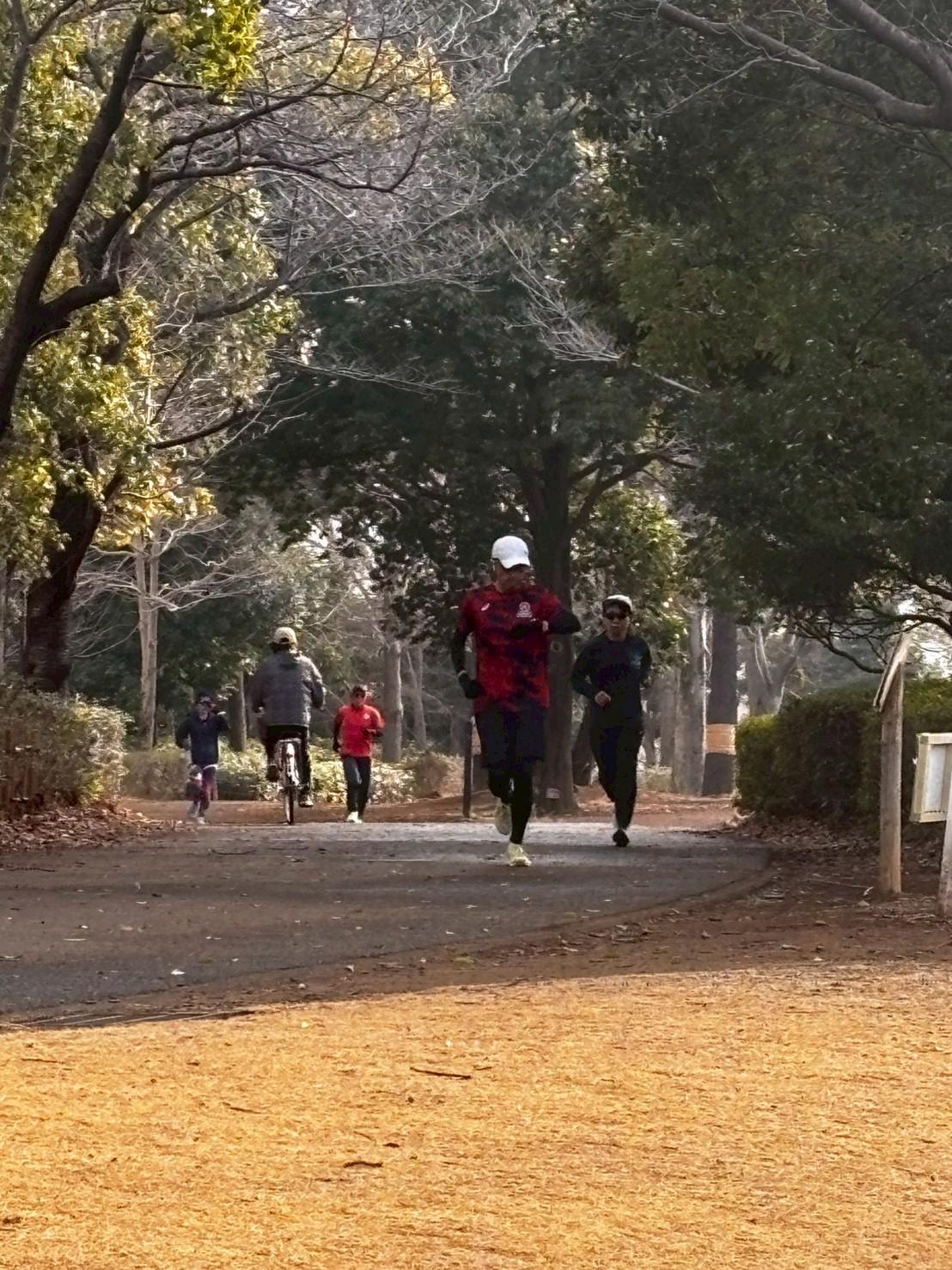 公園内のロード・ジョギングコース(1周1.1㎞)周回でのロングインターバル走。
