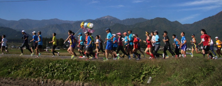 北アルプスの麓、澄み切った青空の下で紅葉の山裾と木崎湖をめぐる、自然の豊かな田園コースがあなたの舞台です。