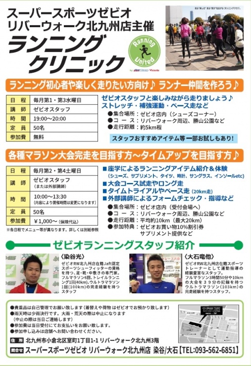 また、フルマラソンやウルトラマラソン(100km)の完走経験もある、ランニングの経験豊富なスタッフがランニングクリニックも開催しております。