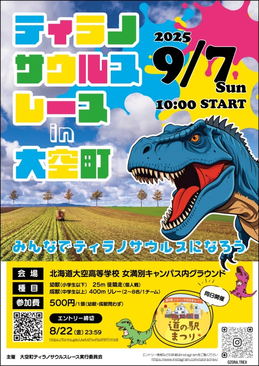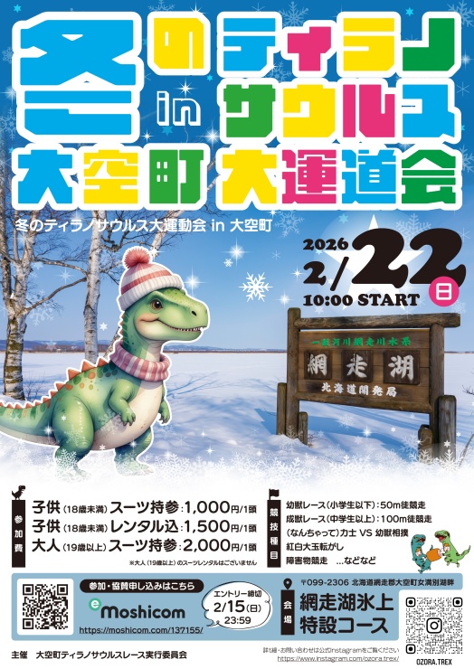 <blockquote class="moshicom-calendar-widget">大空町ティラノサウルスレース実行委員会 | e-moshicom(イー・モシコム)<a href="https://moshicom.com/user/829001" target="_blank">https://moshicom.com/user/829001</a></blockquote>